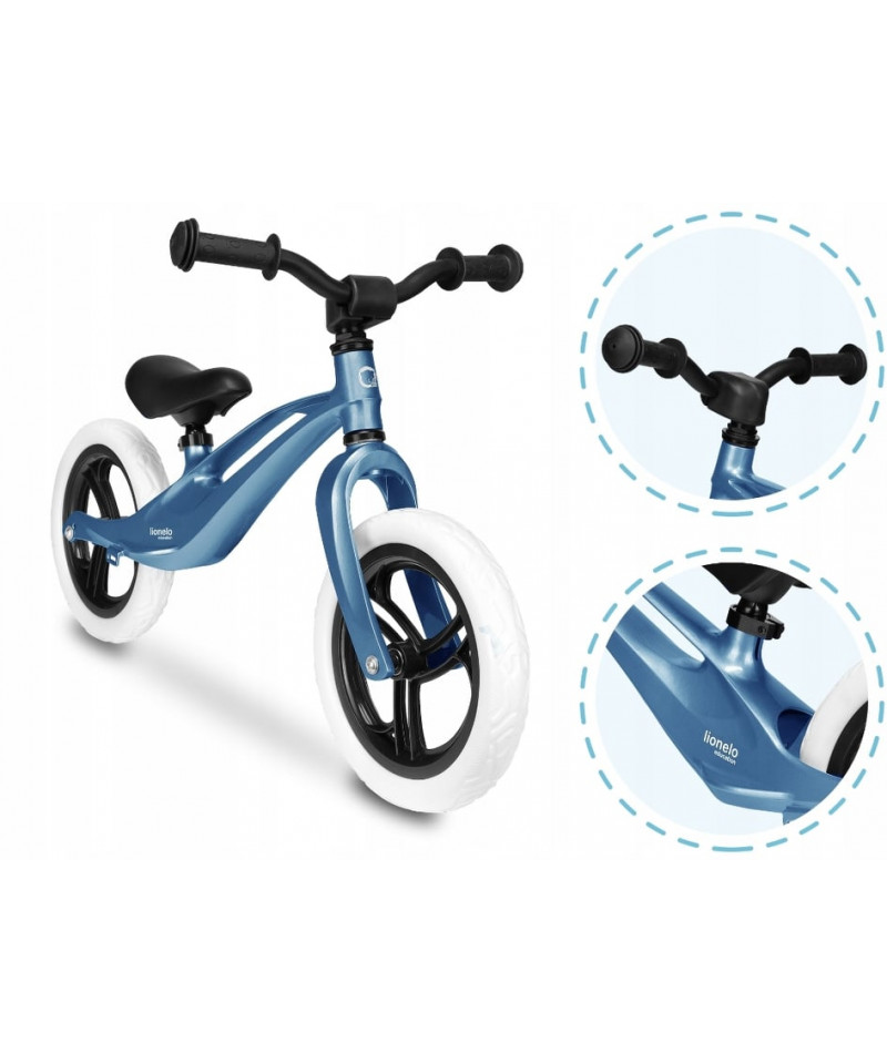 Rowerek biegowy Lionelo Bart Unikalna rama magnezowa – lekka i wytrzymała Bardzo niska waga – 3 kg Antypoślizgowe nakładki na kierownicy Zwrotne koła z wysokojakościowej pianki EVA Regulacja wysokości kierownicy i siodełka Wygodny podnóżek Uchwyt do przenoszenia Zakup bezpośrednio od producenta