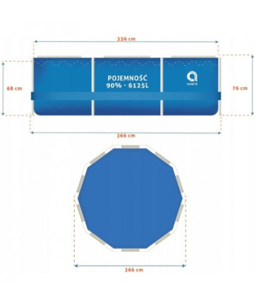 Ogrodowy basen stelażowy marki Avenli o rozmiarze 366 cm x 76 cm cechuje: