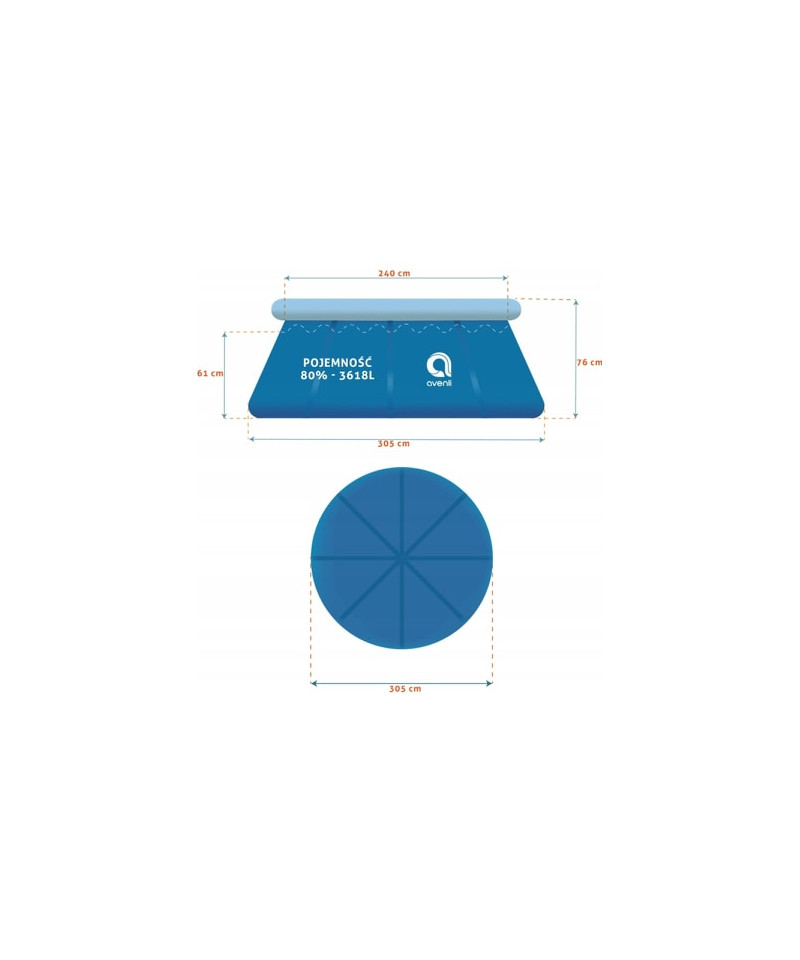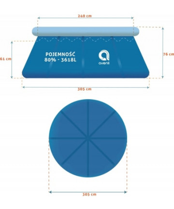 Ogrodowy basen rozporowy marki Avenli o rozmiarze 305 cm x 76 cm cechuje: