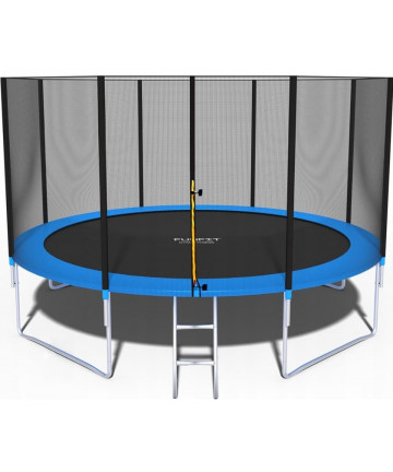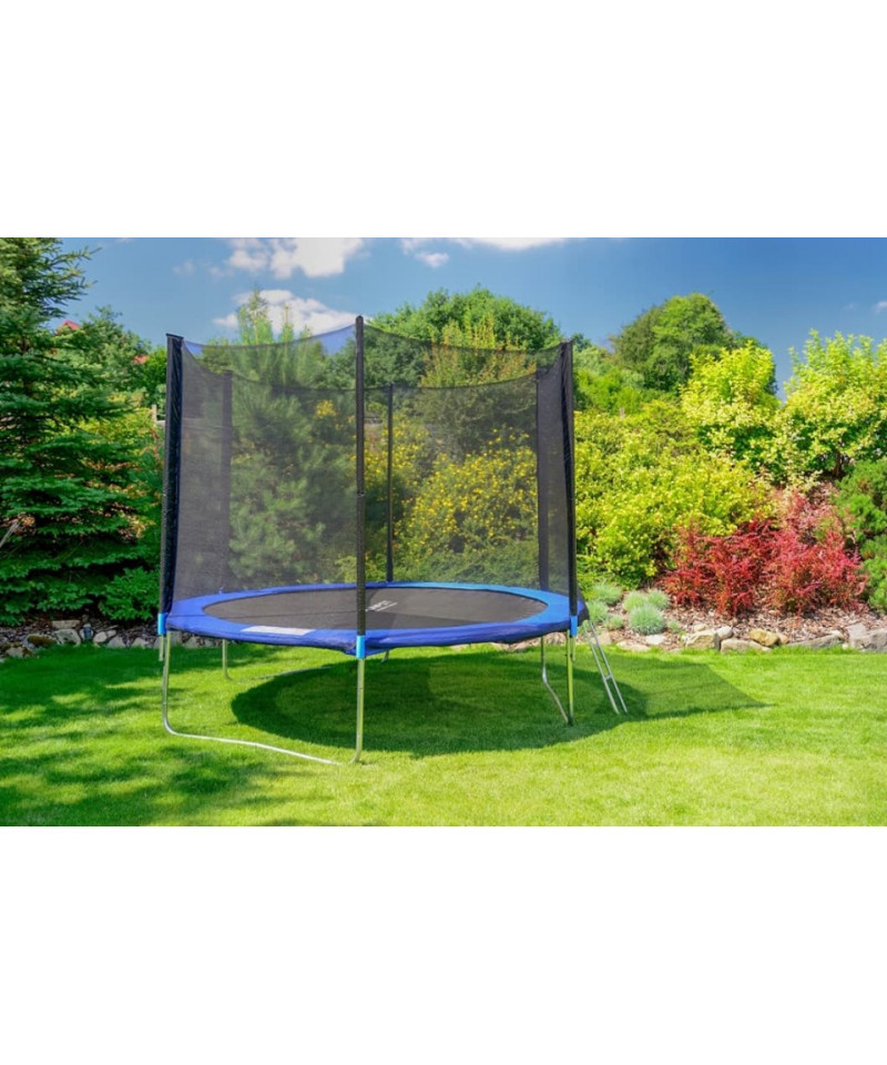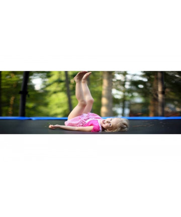 Dlaczego trampoliny mają siatkę zewnętrzną? Ponieważ takie rozwiązanie gwarantuje większe bezpieczeństwo! Siatka mocowana jest po zewnętrznej stronie maty, na słupkach, które są dodatkowo zabezpieczone grubą pianką. Mata ochronna na sprężyny jest bardzo szeroka, zachodzi na matę do skakania i szczelnie zakrywa sprężyny. Nawet podczas intensywnej zabawy osłona wzorowo chroni użytkowników trampoliny.
