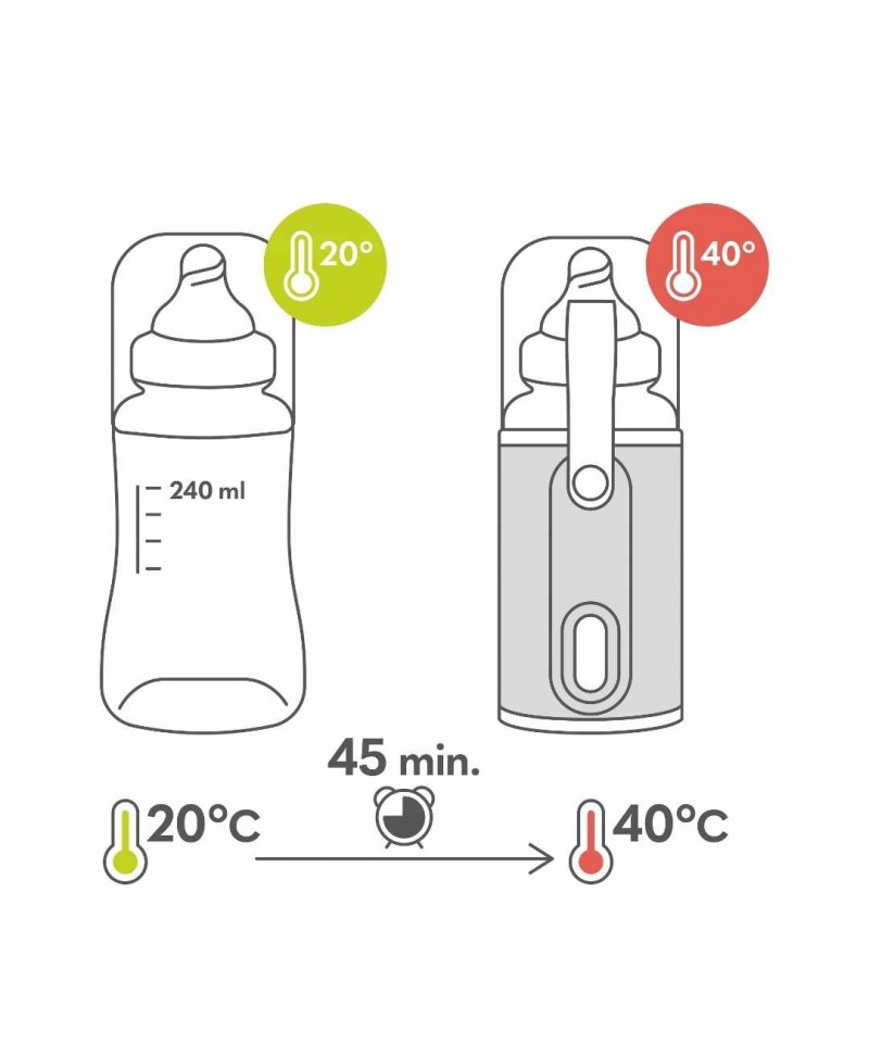 ➜ Dzięki innowacyjnej budowie podgrzewacz dopasuje się do każdego kształtu butelki. Wystarczy, że owiniesz butelkę materiałem podgrzewacza i zapniesz na szeroki rzep.