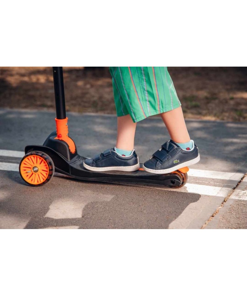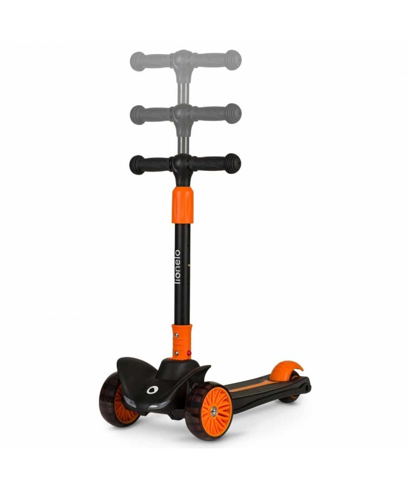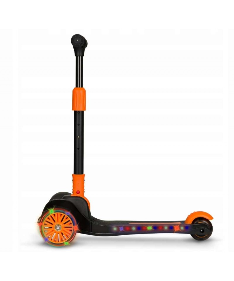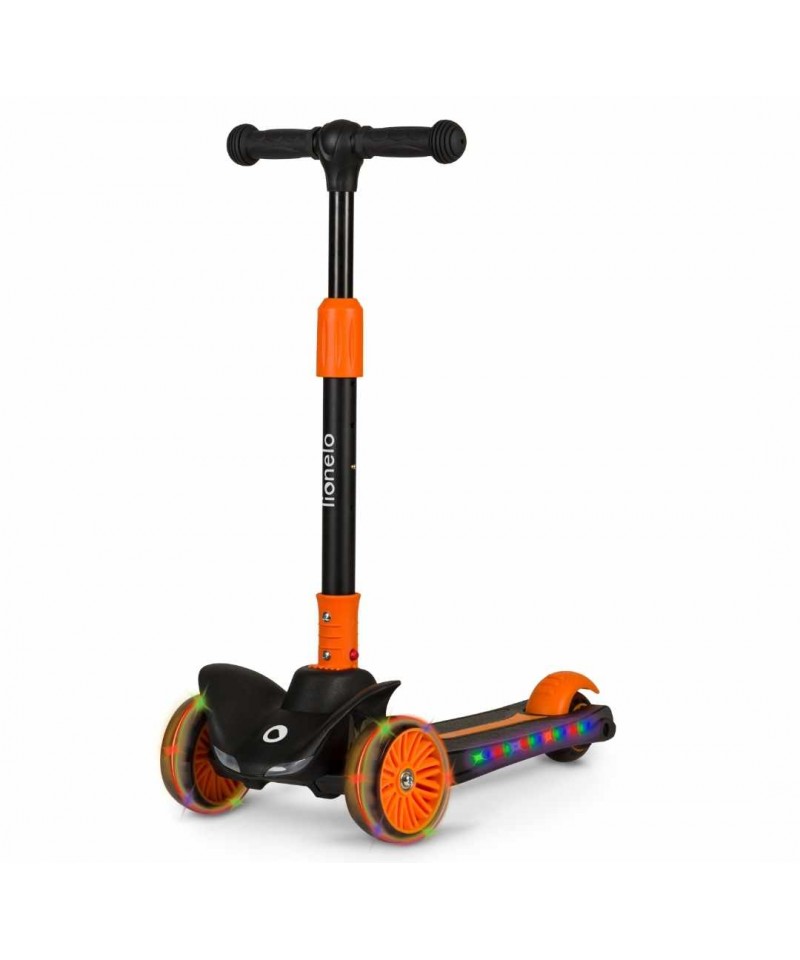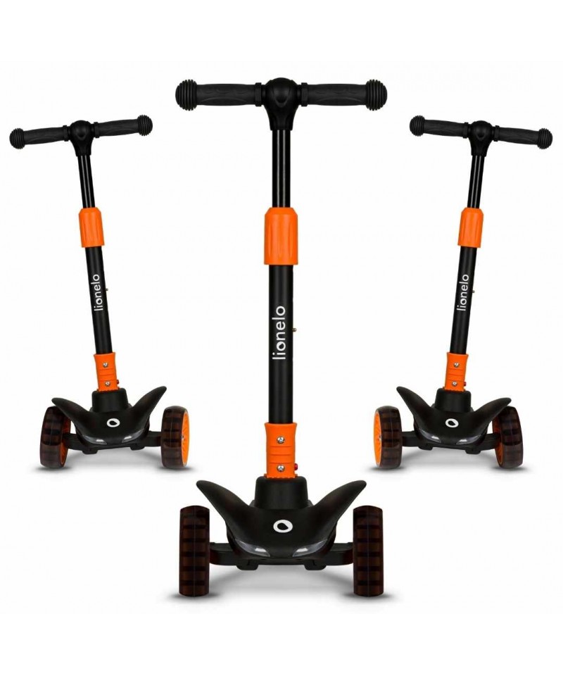 Nasza hulajnoga Lionelo Timmy Orange Black zwraca na siebie uwagę swoim niepowtarzalnym designem i charakterystycznym kolorem. Jesteśmy przekonani, że Twój maluch pokocha ją od pierwszego wejrzenia, a to między innymi za sprawą światełek LED zasilanych ruchem, które umieszczono zostały w kółkach i w podeście (baterie w podeście wystarczają na około 50 godzin pracy).