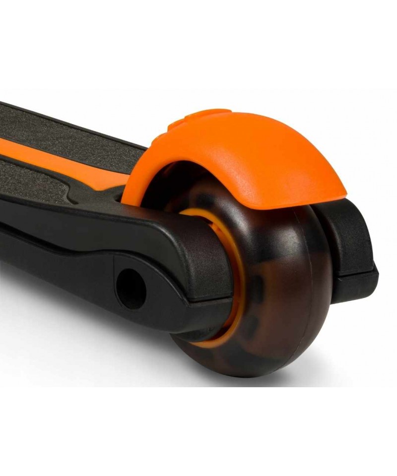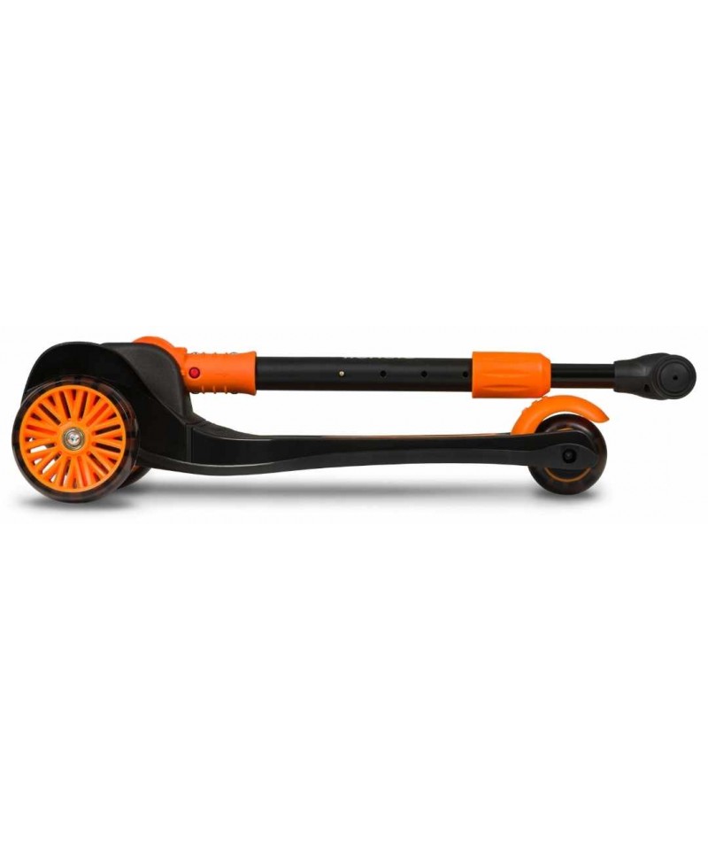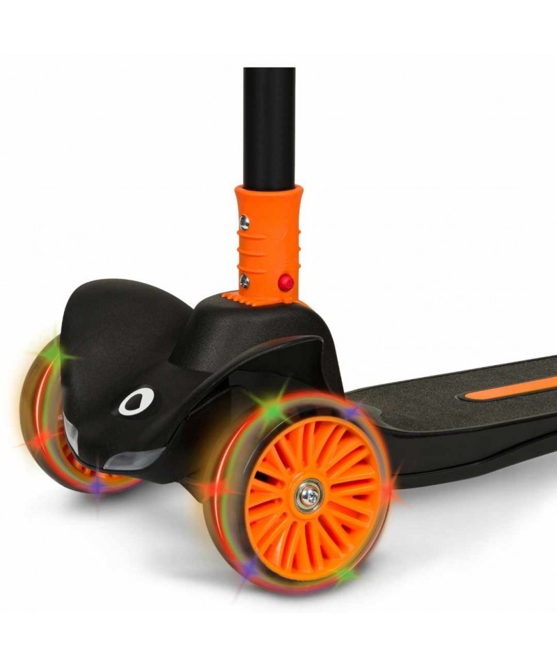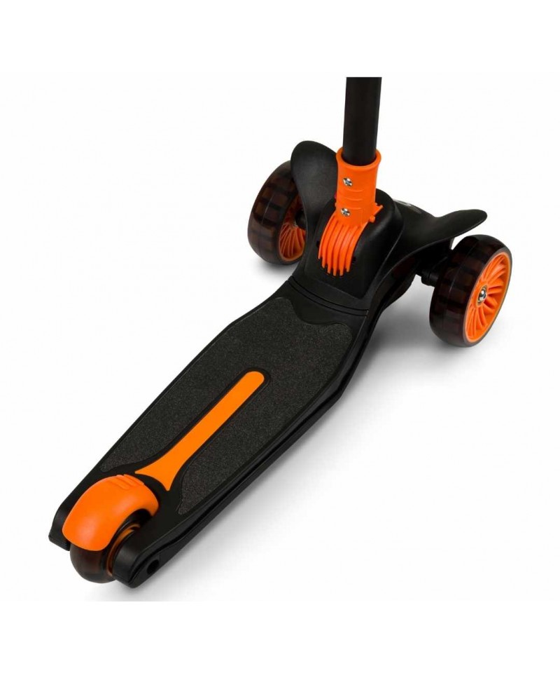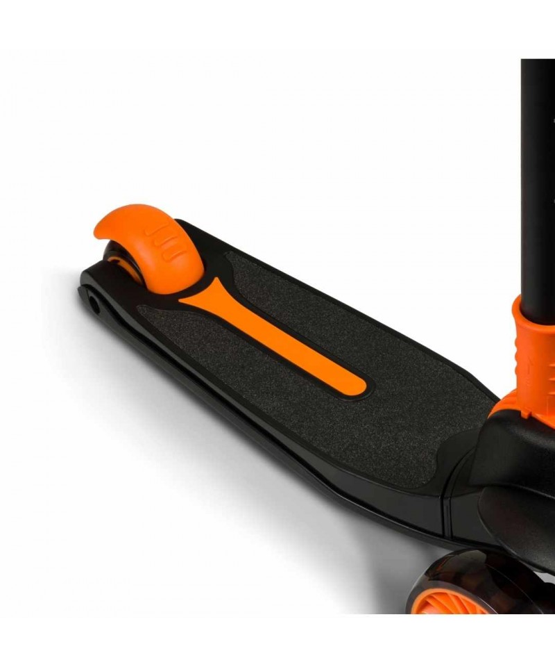 Nasza hulajnoga Lionelo Timmy Orange Black zwraca na siebie uwagę swoim niepowtarzalnym designem i charakterystycznym kolorem. Jesteśmy przekonani, że Twój maluch pokocha ją od pierwszego wejrzenia, a to między innymi za sprawą światełek LED zasilanych ruchem, które umieszczono zostały w kółkach i w podeście (baterie w podeście wystarczają na około 50 godzin pracy).