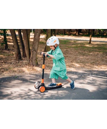 Hulajnoga Lionelo Timmy Orange Black nie wymaga montażu, dzięki czemu zaraz po wyjęciu z opakowania Twoje dziecko może zacząć cieszyć się nowym sprzętem! Co ważne, konstrukcję łatwo złożysz, za sprawą czego maluch nie musi rozstawać się ze swoją ukochaną hulajnogą nawet na wakacjach.