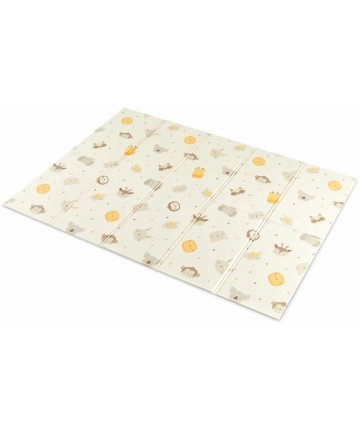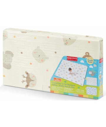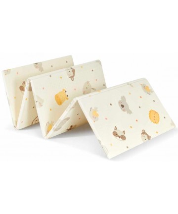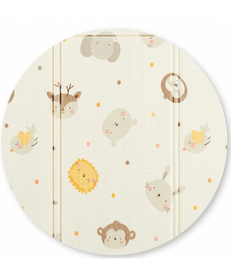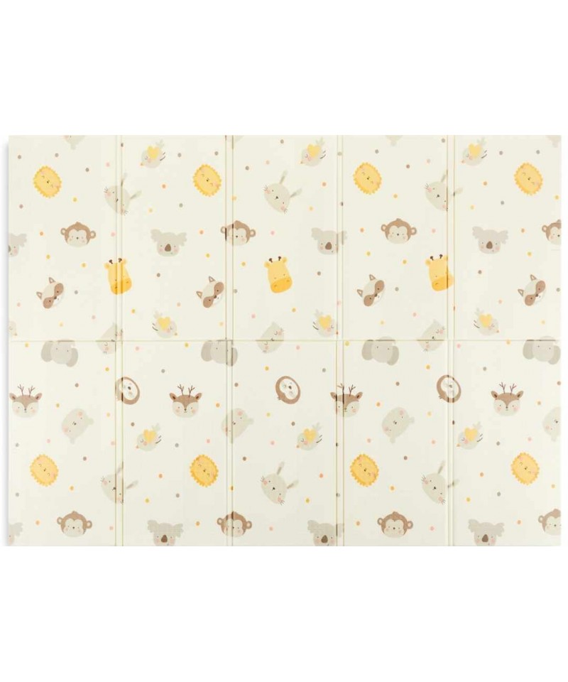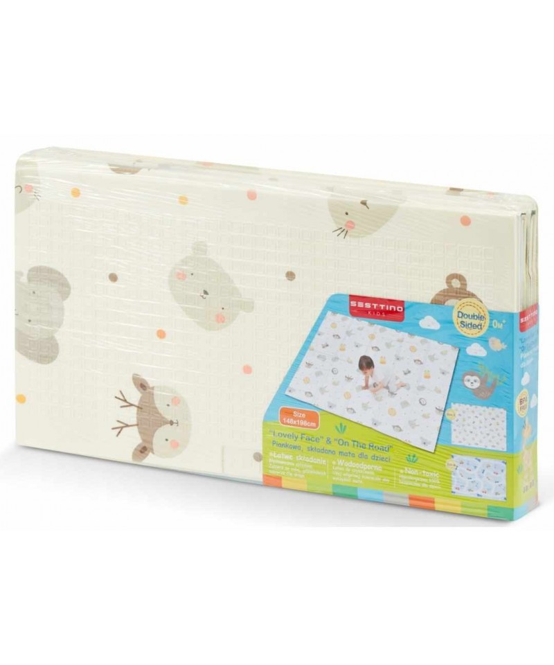 Na macie widnieją urocze, kolorowe zwierzątka z jasnym zachęcającym do zabawy tłem. Zwierzątka mają uśmiechniętą minę, co dodaje przyjaznego charakteru. Tło jest pełne jasnych kolorów, co sprawia, że mata jest atrakcyjna i stymuluje rozwój wizualny maluchów.