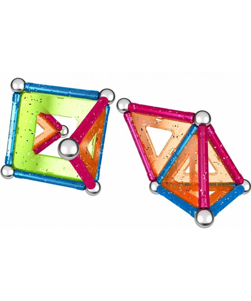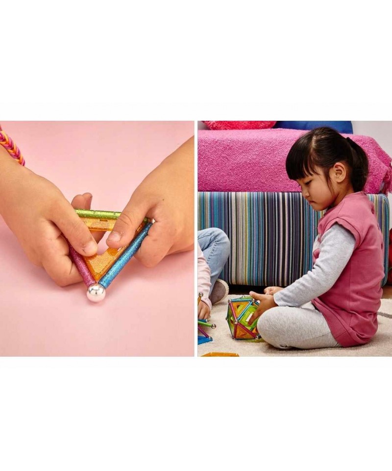 Zabawa świecącymi klockami brokatwymi Geomag Glitter nie ma końca! Możesz zbudować niezliczoną ilość konstrukcji w trakcie zabawy.