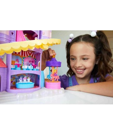 Wybierz się na przejażdżkę kolejką górską, karuzelą z jednorożcami lub diabelskim młynem, który wyrzuca niespodzianki po obróceniu żółtego pokrętła-gwiazdki – elementy można w nim umieszczać wciąż od nowa.
