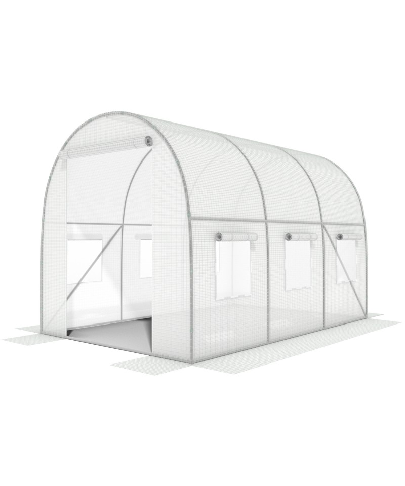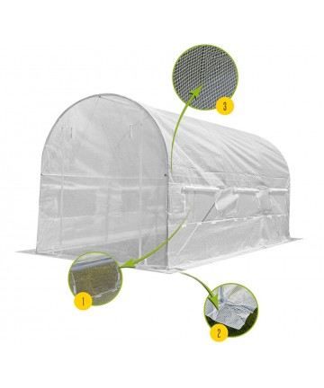 IDEALNE WARUNKI: Przód tunelu stanowią prostokątne drzwi zasuwane na zamek błyskawiczny, dzięki czemu utrata temperatury będzie minimalna. Odsłaniane okna z moskitierą po obu stronach w oferowanym przez nas tunelu dają możliwość regulacji temperatury oraz ilości światła we wnętrzu i dostosowania jej pod kątem danych upraw. Dzięki temu tworzą się idealne warunki dla wegetacji wszelakich roślin i warzyw uprawnych jak pomidory, ogórki, fasola czy cukinia.