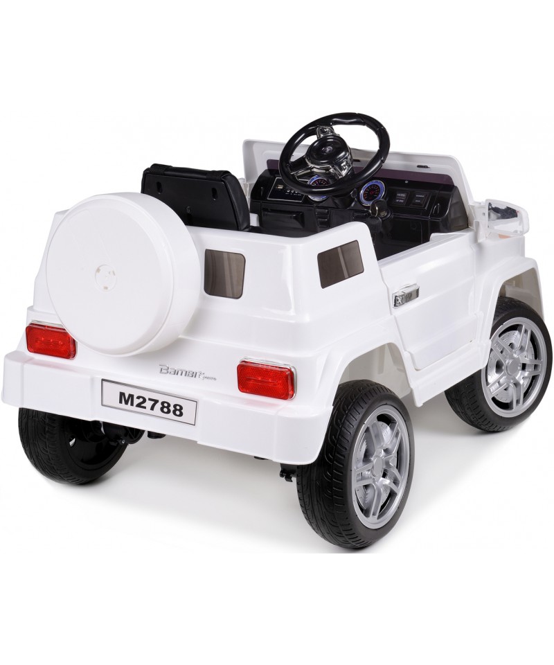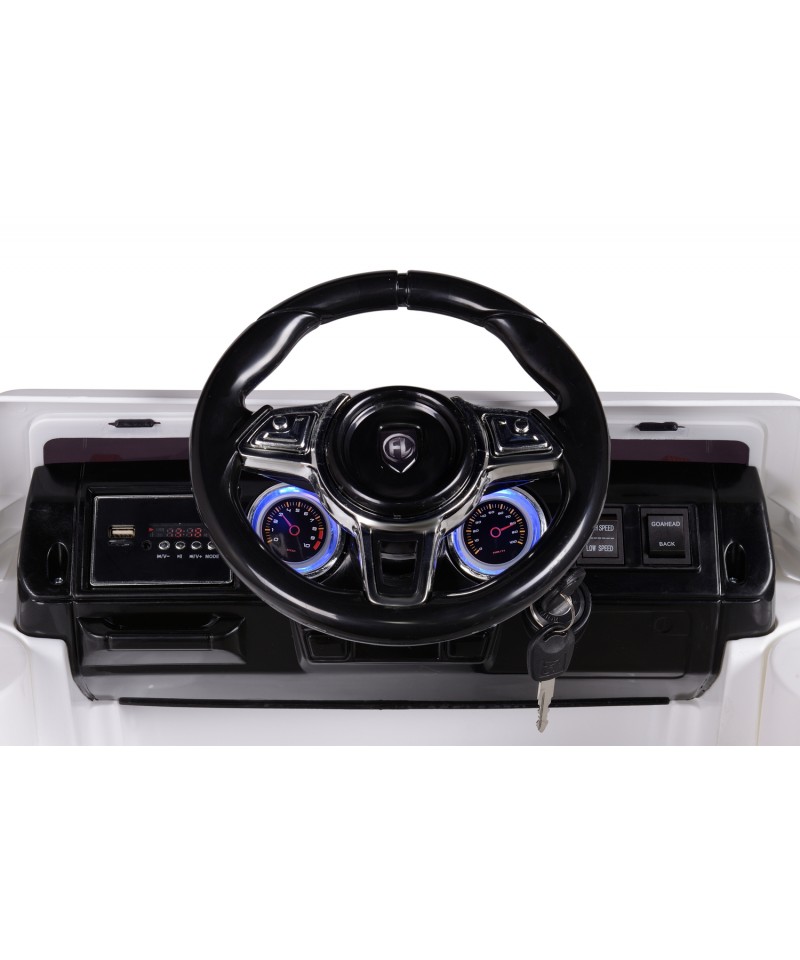 Jazdę umilą wbudowane melodyjki oraz możliwość podłączenia dźwięku z zewnętrznego źródła.