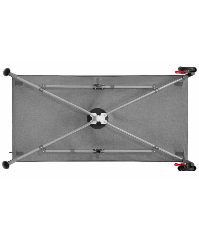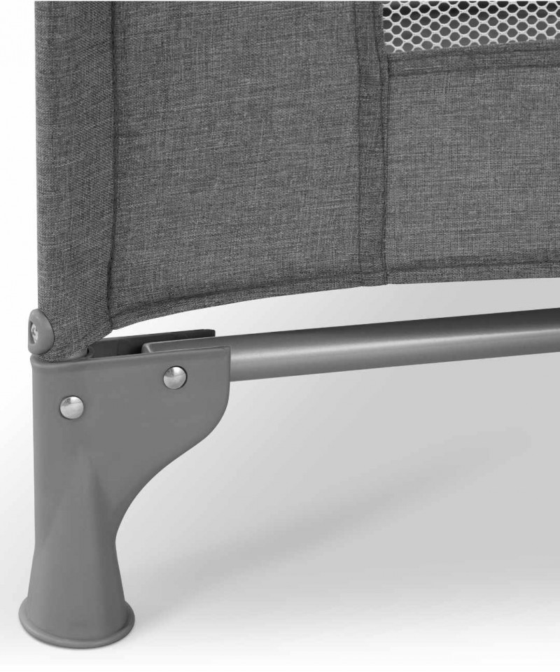 Wzmocniona podstawa łóżeczka z systemem składania zabezpieczonym przed samoczynnym złożeniem łóżeczka.
