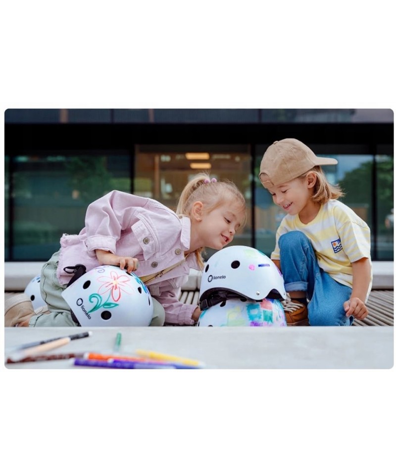 Każde dziecko jest wyjątkowe. Z tego powodu kask Lionelo umożliwia swobodne ozdabianie kasku z zewnątrz za pomocą kredy lub pisaków. Dzięki temu maluszek może mieć podczas zabawy indywidualny, zaprojektowany przez siebie „nadruk”, a przy tym rozwijać kreatywność oraz umiejętności plastyczne.