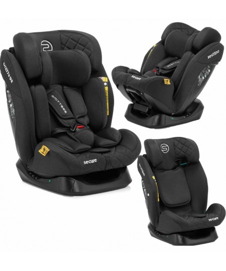• tyłem i przodem do kierunku jazdy - poprzedzone badaniami zalecenia ekspertów, określone w normie i-Size zalecają przewożenie dziecka tyłem do kierunku jazdy minimalnie do 15 miesiąca życia. Secure Pro i-Size umożliwia przewożenie dziecka tyłem aż do 105cm wzrostu, montaż przodem do kierunku jazdy możliwy jest w przedziale 100-150cm wzrostu dziecka