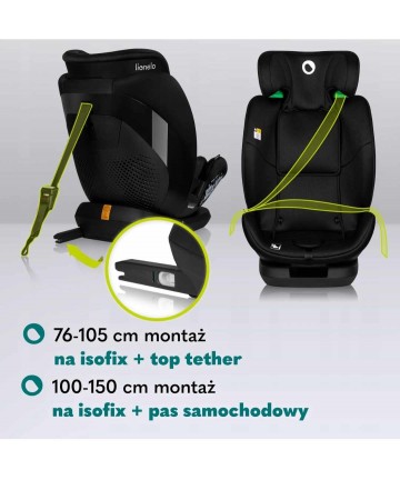 Sposób montażu: 76-105- isofix +top tether, 100-150 - isofix + pas samochodowy