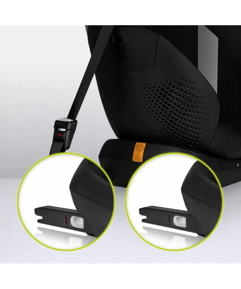 Montaż przy użyciu złącz ISOFIX daje gwarancję prawidłowego wpięcia fotelika – specjale wskaźniki zmieniają kolor z czerwonego na zielony, sygnalizując poprawne wpięcie. Dodatkowo fotelik został wyposażony w system Double Lock ISOFIX, który zabezpiecza przed niechcianym wypięciem.