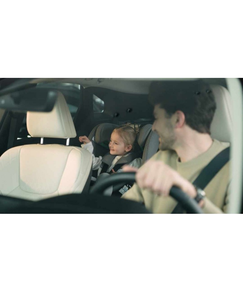 Regulacja wysokości zagłówka została zintegrowana z regulacją pasów, dzięki czemu jednym pociągnięciem ręki dostosujesz fotelik do indywidulanych wymagań maluszka.