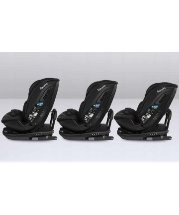 Cztery stopnie pochylenia oparcia, zarówno w montażu przodem, jak i tyłem do kierunku jazdy, pozwalają dopasować oparcie do potrzeb dziecka. Regulacja siedziska w pozycji tyłem do kierunku jazdy zapewnia optymalną pozycję półleżącą dla dziecka.