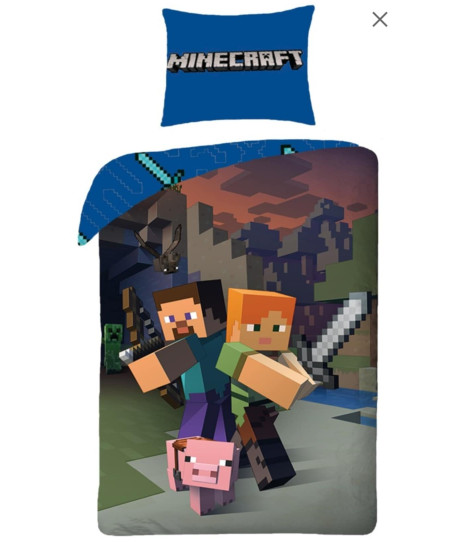 MINECRAFT POŚCIEL DWUSTRONNA  BAWEŁNA 100% STEVE NIEBIESKA