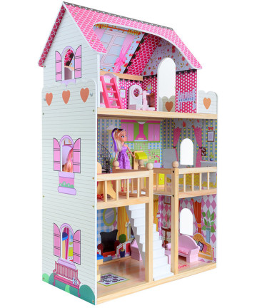 Drewniany domek dla lalek marki Funfit Kids to gwarancja radosnych chwil i spełnienia marzeń każdej małej dziewczynki. Bajecznie kolorowa zabawka jeszcze bardziej ubarwi świat dziecięcej zabawy.