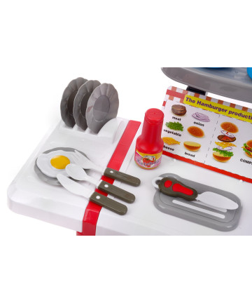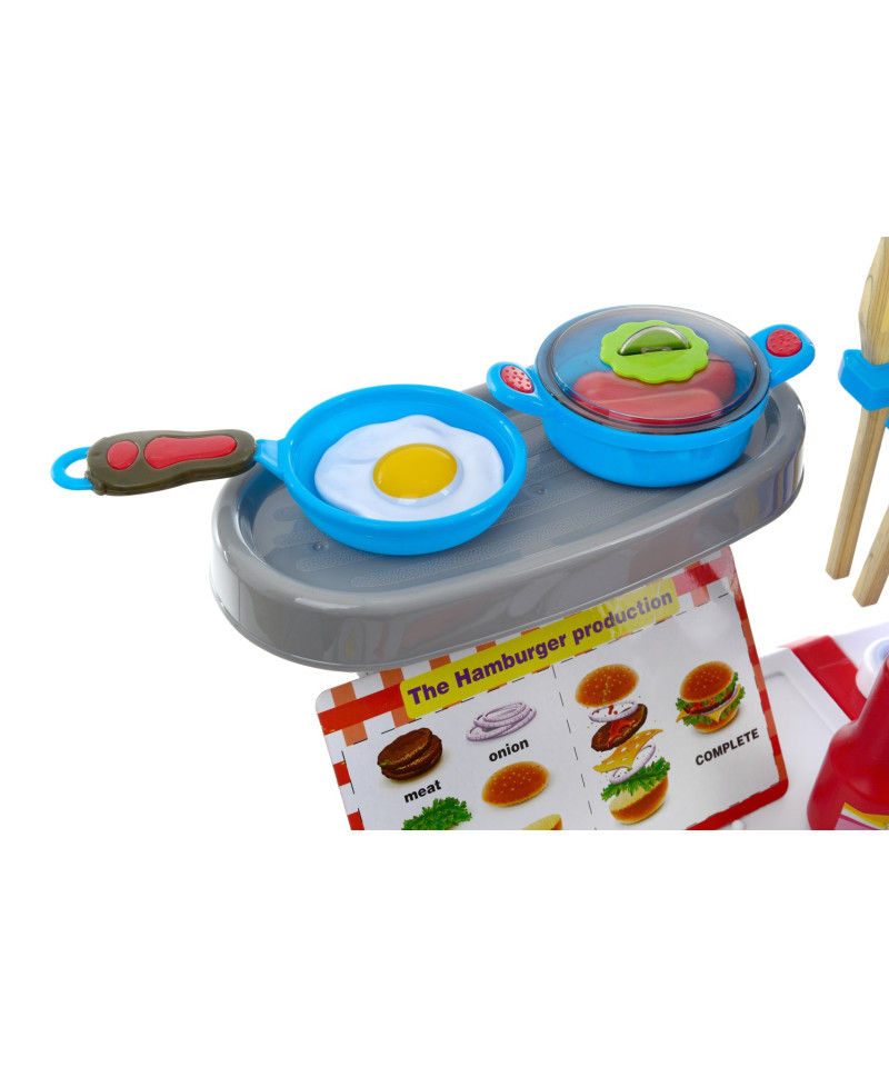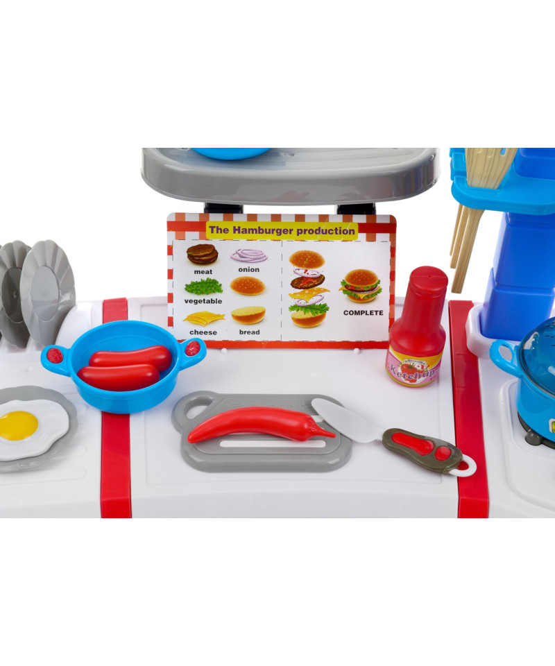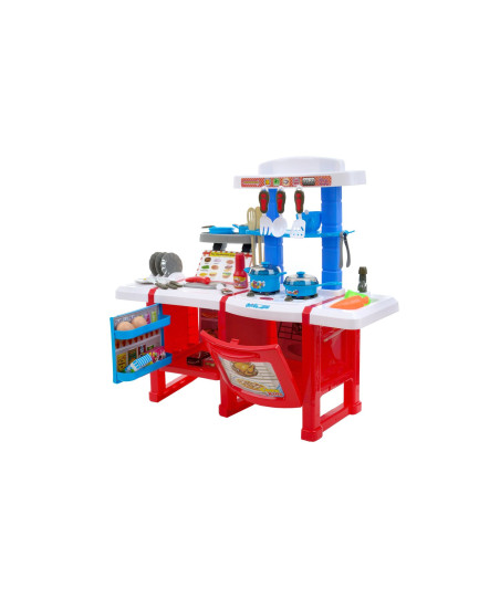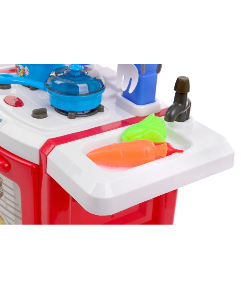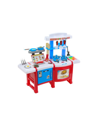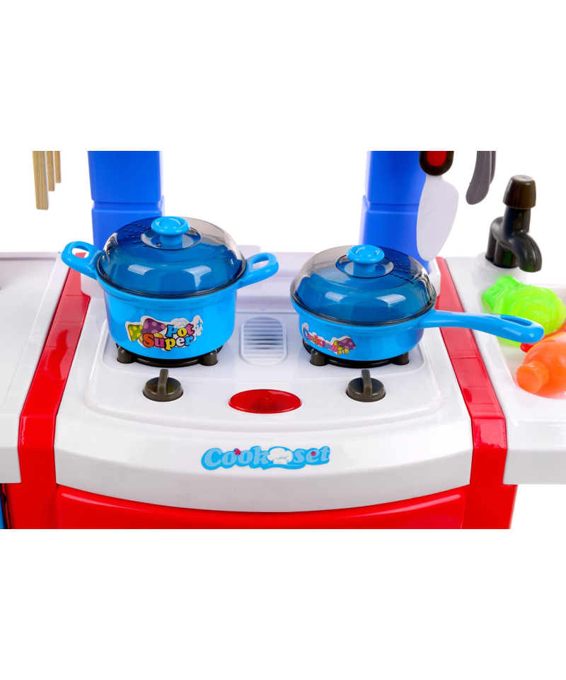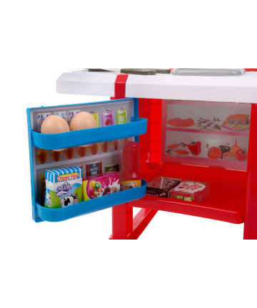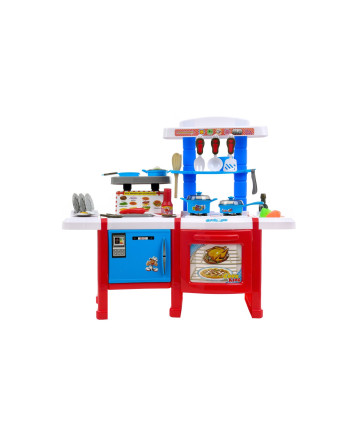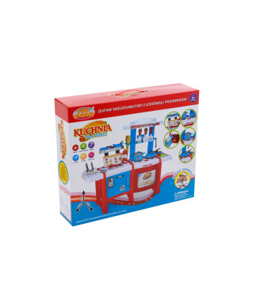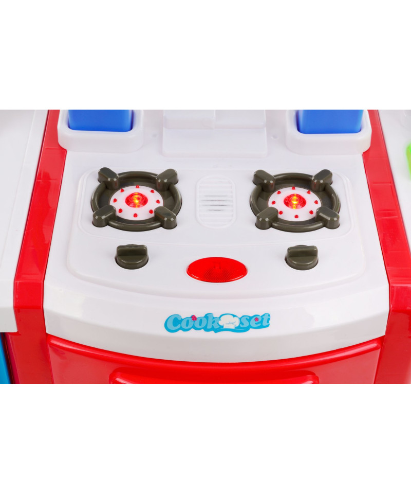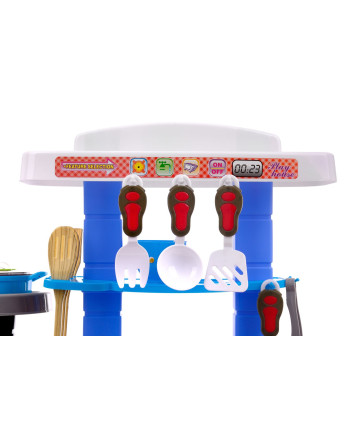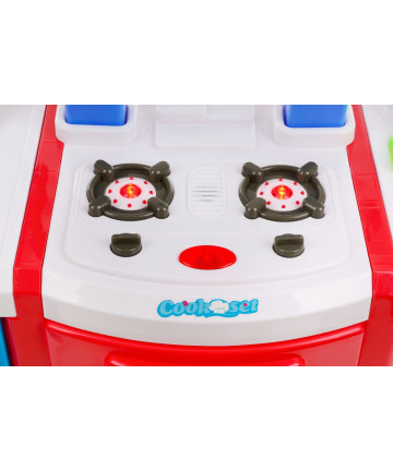Cook set od FUNFIT KIDS to idealna propozycja dla dzieci, które chętnie naśladują zajęcia dorosłych. To ciekawa i wciągająca zabawa dla małych kucharzy. Nowoczesny design, ciekawa kolorystyka, to tylko niektóre cechy tej kuchni. Dzieci znajdą tu płytę z dwoma polami grzejnymi, otwierany piekarnik, lodówkę, zlewozmywak, suszarkę do naczyń. Całą zabawę wzbogaci dźwięk gotujących się potraw.