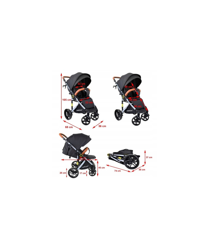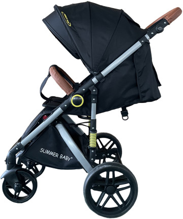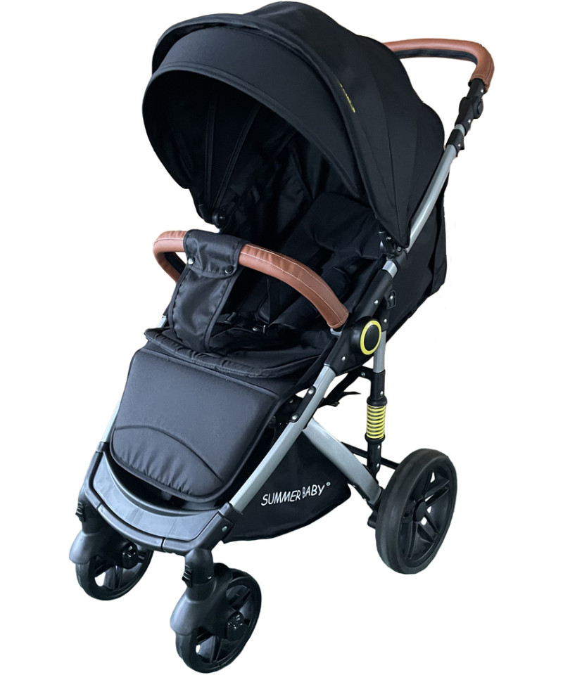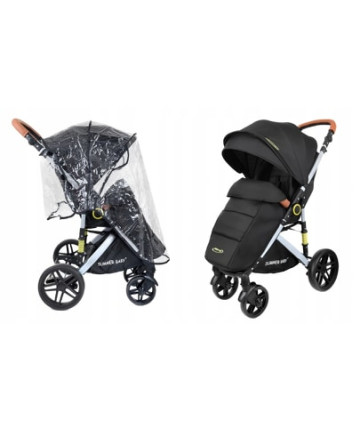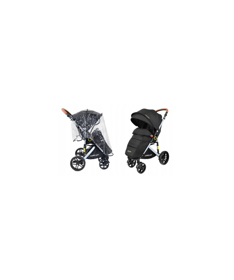 WÓZEK SPACERÓWKA SUMMER BABY SEMPRE DUŻE KOŁA 25 cm + RĄCZKI Z EKO SKÓRY + OCIEPLACZ + FOLIA