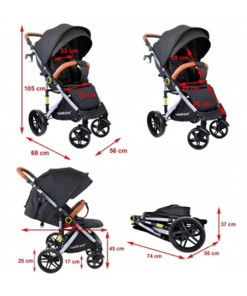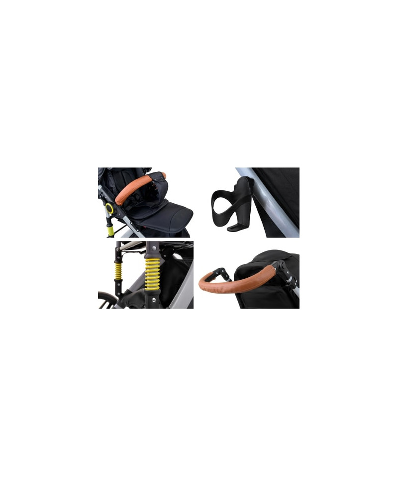 | Informacje dodatkowe | Amortyzatory, Blokada kół obrotowych, Hamulec, Odchylane oparcie, Pałąk bezpieczeństwa, Pełna rączka, Pozycja leżąca, Regulowana rączka, Regulowany podnóżek, Skrętne koła |