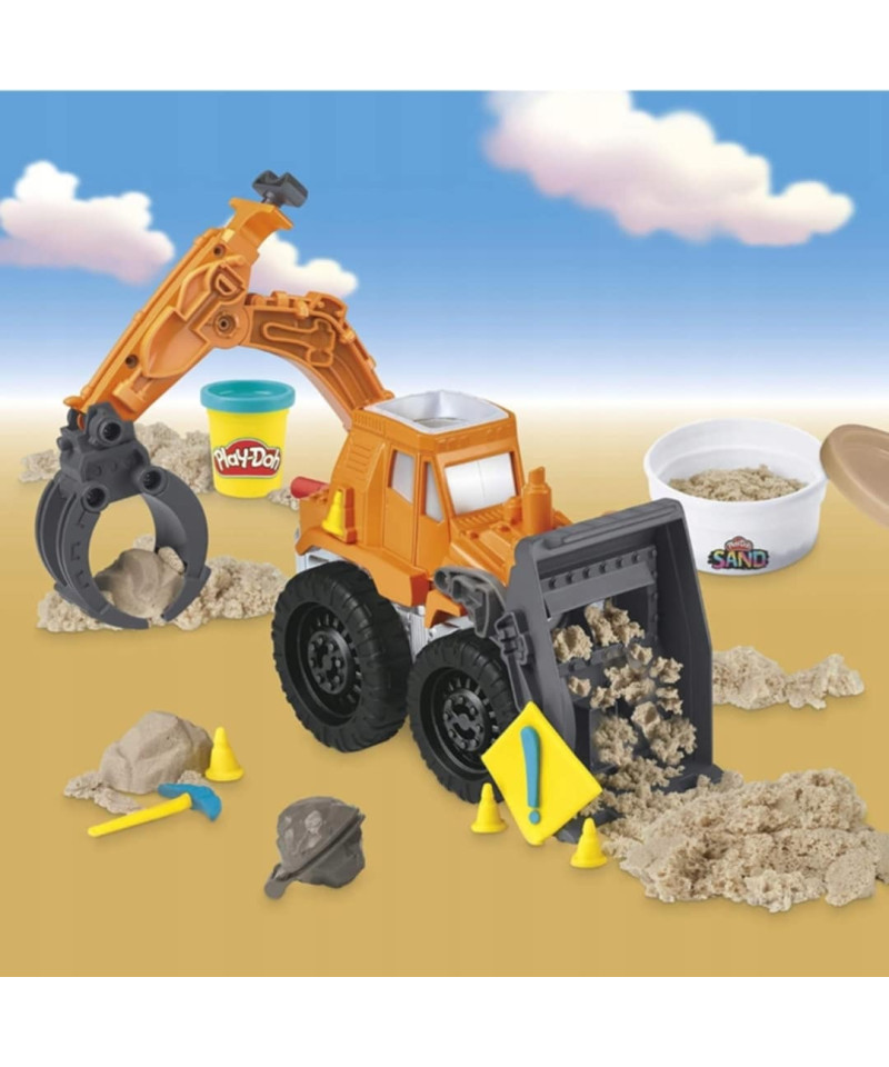 Na korpusie ładowarki są półforemki, które pozwolą na zrobienie pachołków drogowych i różnych przydatnych na budowie narzędzi. Masa plastyczna Play-Doh w specjalnym kolorze sprawia, że wymyślanie historii jest jeszcze przyjemniejsze.