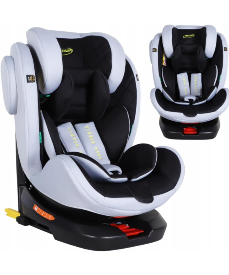 Fotelik dziecięcy zapewnia maksymalne bezpieczeństwo i komfort podczas podróży. Dzięki obrotowi o 360° można łatwo umieścić dziecko w foteliku i dostosować jego ustawienie. System ISOFIX i górny pas mocujący gwarantują stabilność oraz pewność montażu. Fotelik jest odpowiedni dla dzieci o wzroście od 40 do 150 cm, dzięki czemu rośnie wraz z maluchem. Regulowany zagłówek (8 pozycji) oraz 3-stopniowa regulacja odchylenia pozwalają dostosować siedzisko do potrzeb dziecka. 5-punktowe pasy bezpieczeństwa zapewniają solidne zapięcie i ochronę w razie nagłego hamowania. Zdejmowany pokrowiec ułatwia utrzymanie czystości i higieny. Produkt jest zatwierdzony zgodnie z regulaminem ONZ nr R129/03, co potwierdza jego wysoką jakość i bezpieczeństwo.