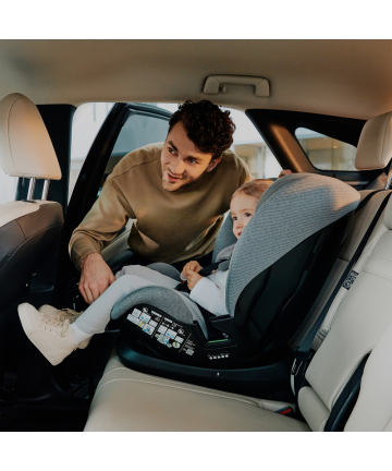 Regulacja wysokości zagłówka została zintegrowana z regulacją pasów, dzięki czemu jednym pociągnięciem ręki dostosujesz fotelik do indywidulanych wymagań maluszka.
