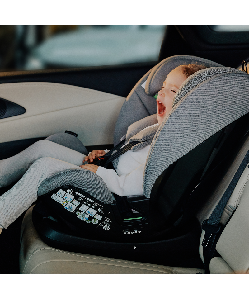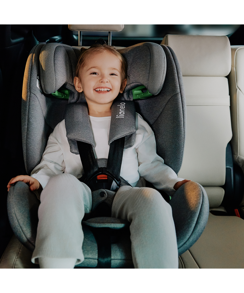 Regulacja wysokości zagłówka została zintegrowana z regulacją pasów, dzięki czemu jednym pociągnięciem ręki dostosujesz fotelik do indywidulanych wymagań maluszka.