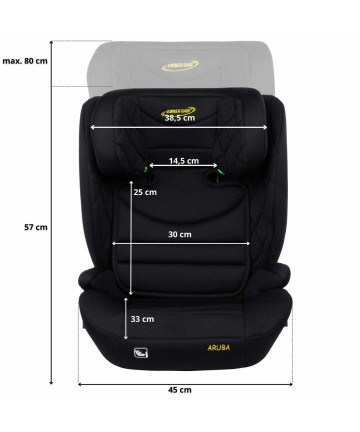 • Wymiary podstawy fotelika: 38 cm (szerokość) x 45 cm (głębokość)
