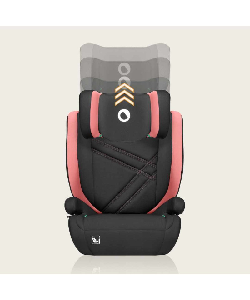 Regulacja wysokości zagłówka zintegrowana z pasami sprawia, że jednym ruchem wyregulujesz odpowiednie dopasowanie fotelika do wysokości dziecka