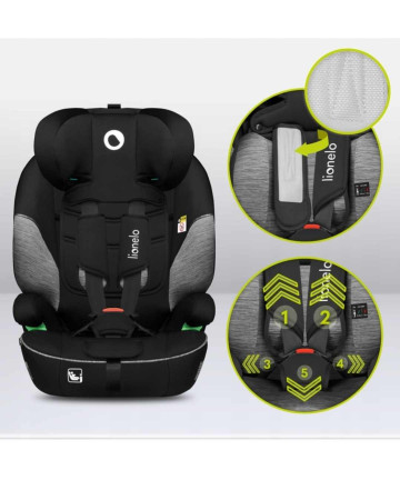 Fotelik samochodowy dla grupy wzrostowej 76-150cm oraz NAJNOWSZĄ NORMĄ I-SIZE Lionelo Levi