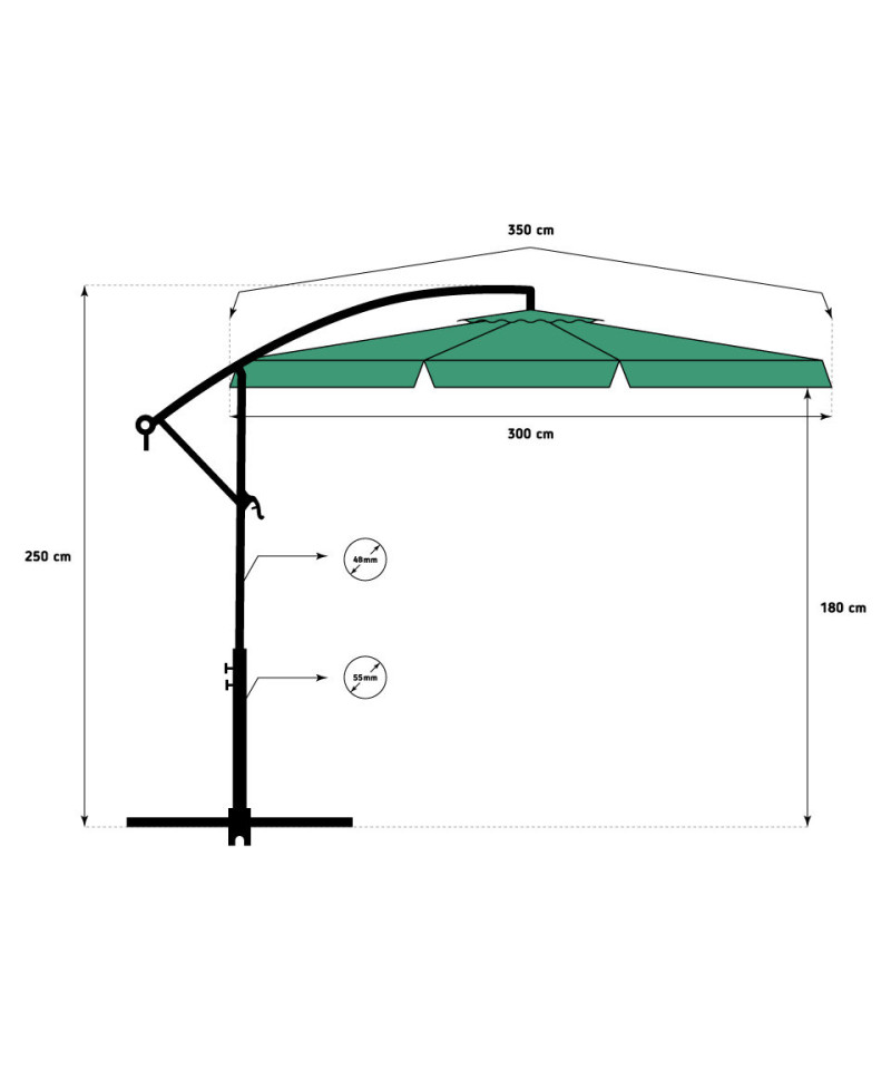 Duży, bardzo praktyczny parasol ogrodowy o średnicy aż 3 metrów. Wytrzymała stalowa konstrukcja, możliwość regulacji wysokości i nachylenia czaszy, szybko się składa i rozkłada. Najwyższa jakość i solidne wykonanie, zapewni ochronę przed słońcem i deszczem.