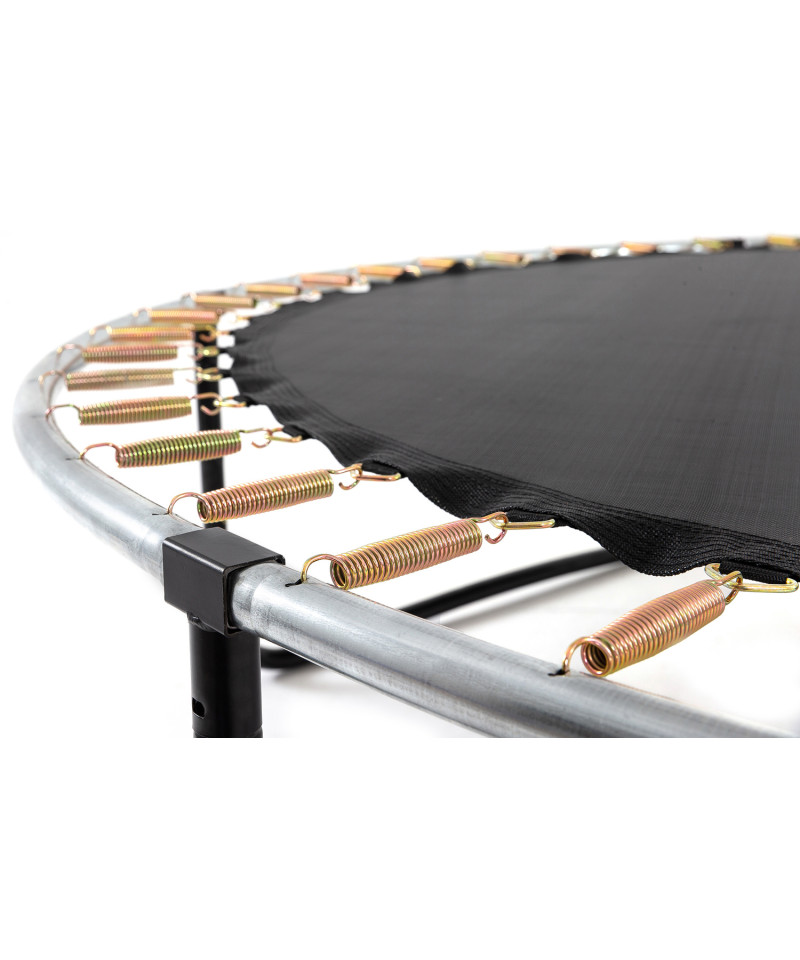 Mata ochronna na sprężyny jest bardzo szeroka, zachodzi na matę do skakania i szczelnie zakrywa sprężyny.