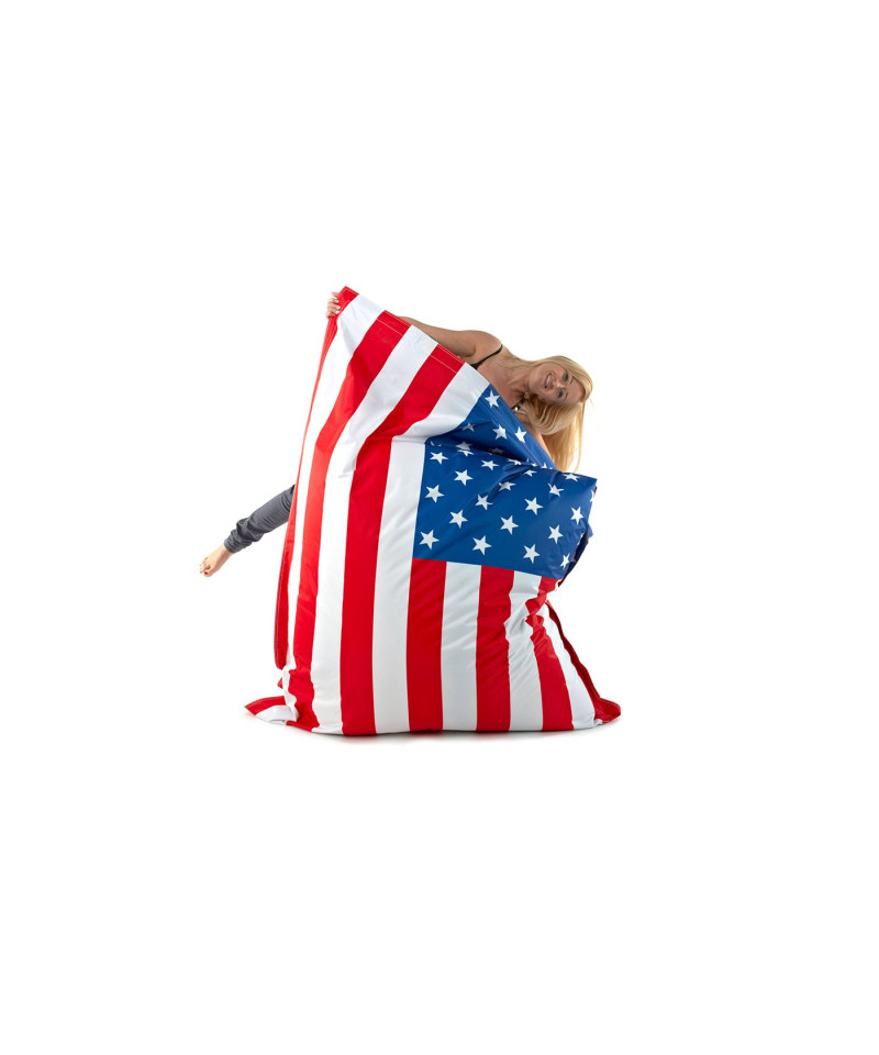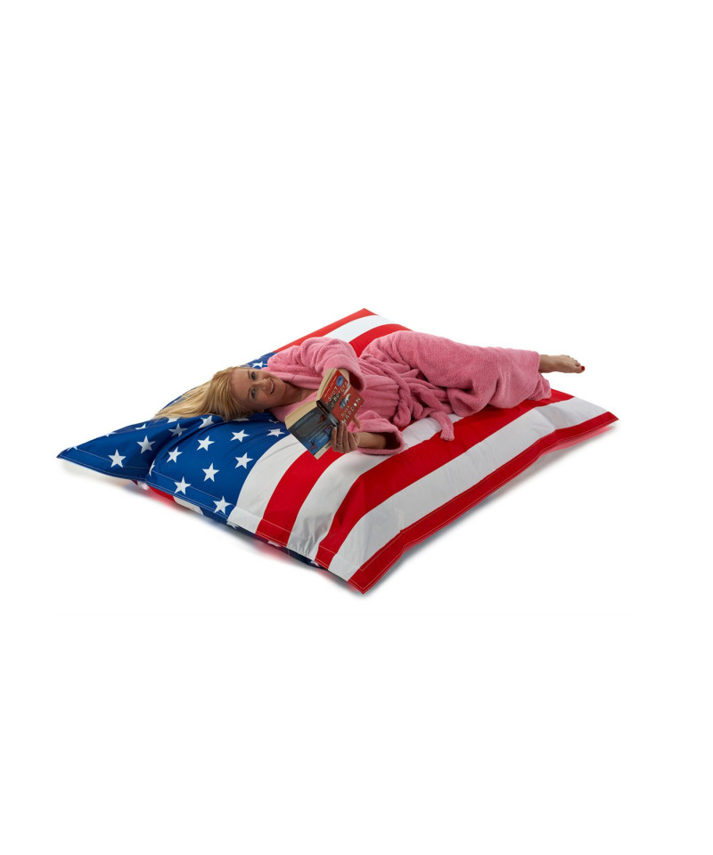 BEANBAG USA to ogromna, mierząca 1,8m szerokości i 1,4m wysokości poducha z najmodniejszym motywem amerykańskiej flagi. Możesz na niej wygodnie leżeć, siedzieć, spać i wypoczywać w setkach pozycji. Poducha idealnie sprawdza się, gdy odwiedzają Cię goście, a Ty nie dysponujesz wystarczającą ilością krzeseł. Każdy będzie chciał na niej siedzieć! BEANBAG USA to także doskonały pomysł na kreatywny, designerski i użyteczny prezent.
