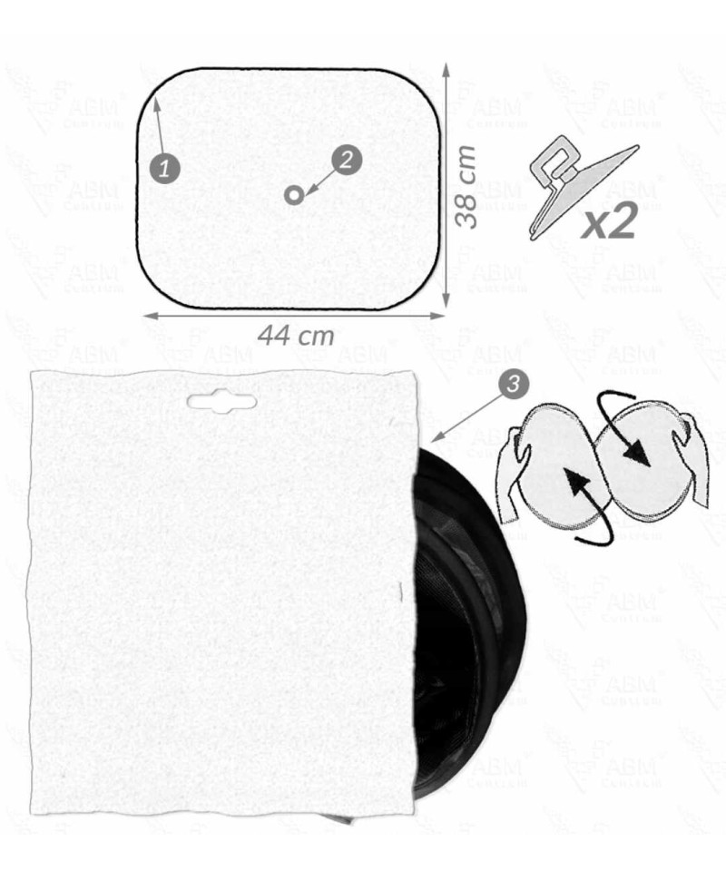 • Po rozłożeniu jedna zasłonka ma rozmiar 44 x 38 cm