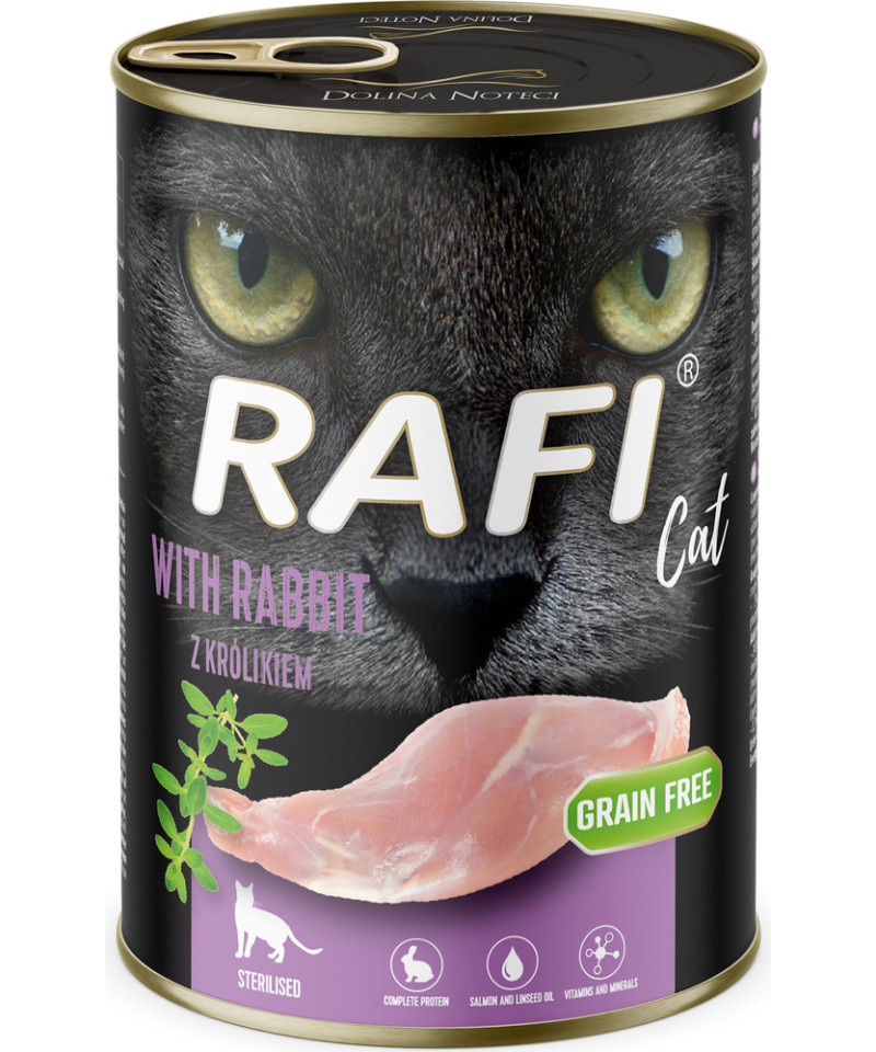 Mokra karma dla kotów zawierająca dużą ilość mięsa i produktów pochodzenia zwierzęcego, w tym lekkostrawnego, a przy tym sycącego królika. Jest dla czworonogów tak apetyczna, jak jedzenie przygotowane w domu. Zapewnia, że w diecie kota obecne będą wszystkie składniki odżywcze w odpowiednich proporcjach. Dostarcza również bezwarunkowo koniecznej w diecie kotów tauryny. Karma wzbogacona jest olejami: z łososia i lnianym gwarantującymi m.in. doskonałą kondycję i wygląd sierści.
