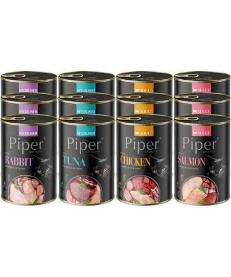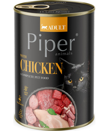 Karma Piper Animals jest pełnoporcjowym, bytowym produktem pokrywającymi w 100% dzienne zapotrzebowanie na wszystkie składniki odżywcze, mineralne i witaminy dorosłych kotek/ kotów wszystkich ras o umiarkowanej aktywności fizycznej, przebywających w komfortowych warunkach otoczenia, niebędących w ciąży bądź laktacji. Została zbilansowana pod kątem zawartości składników odżywczych w oparciu o nowoczesne normy żywieniowe i zalecenia prawidłowego żywienia. Zapewnia prawidłowe utrzymanie mineralizacji kości i zębów oraz prawidłowy przebieg wszystkich procesów metabolicznych.