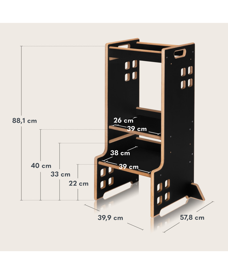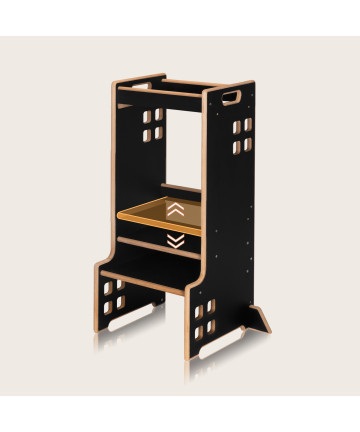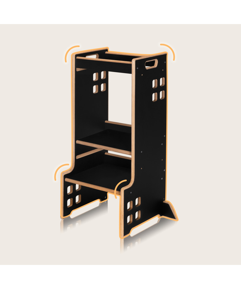 Zarówno jako pomocnik, jak i biblioteczka, zaprojektowany zgodnie z ideą Montessori mebel pozwala na umieszczanie przedmiotów czy książeczek na wysokości wzroku dziecka, co zachęca je do wyciągania rączek. Aktywizuje dziecko i stymuluje jego dalszy rozwój. W kuchni czy w dziecięcym pokoju, z dopasowanym do wzrostu meblem dziecko uczy się samodzielnego działania.
