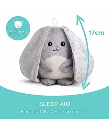 Szumiś królik to miękki, słodki i miły miś, który czeka, żeby utulić do snu maluszka. Szumiące serce szumisia królika emituje szumy podobne do tych, które dzieci słyszały jeszcze w brzuszku mamy. Dlatego nowonarodzone maluchy tak lubią zasypiać przy dźwiękach królika szumisia - czują się spokojnie, bezpiecznie i szybciej zasypiają.