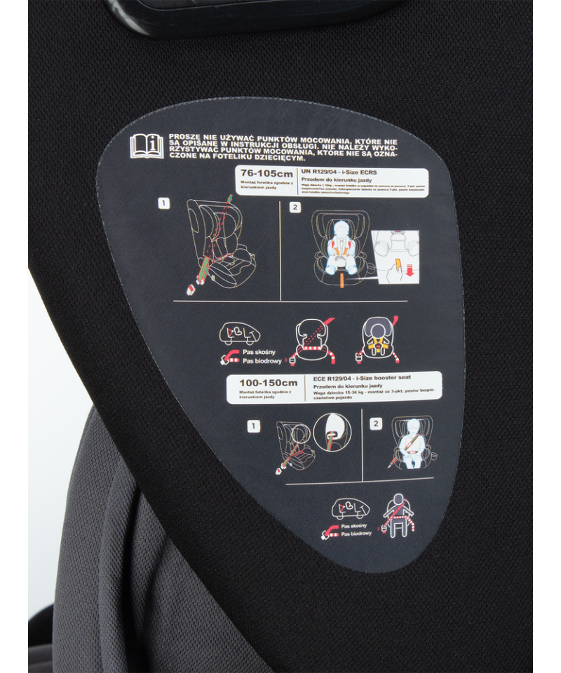 | Informacje dodatkowe | i-Size, R129, Regulacja pozycji dziecka, Regulacja siedziska, Regulacja zagłówka, Zdejmowana tapicerka |