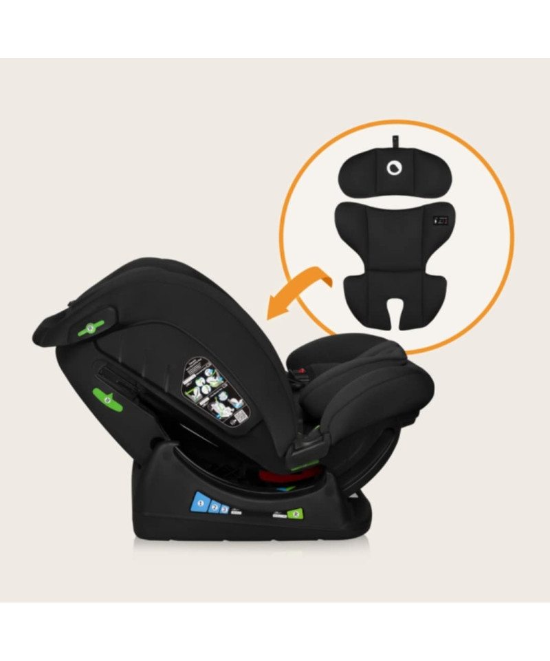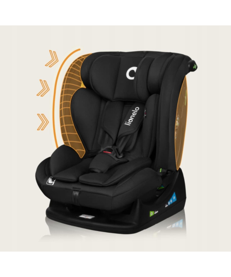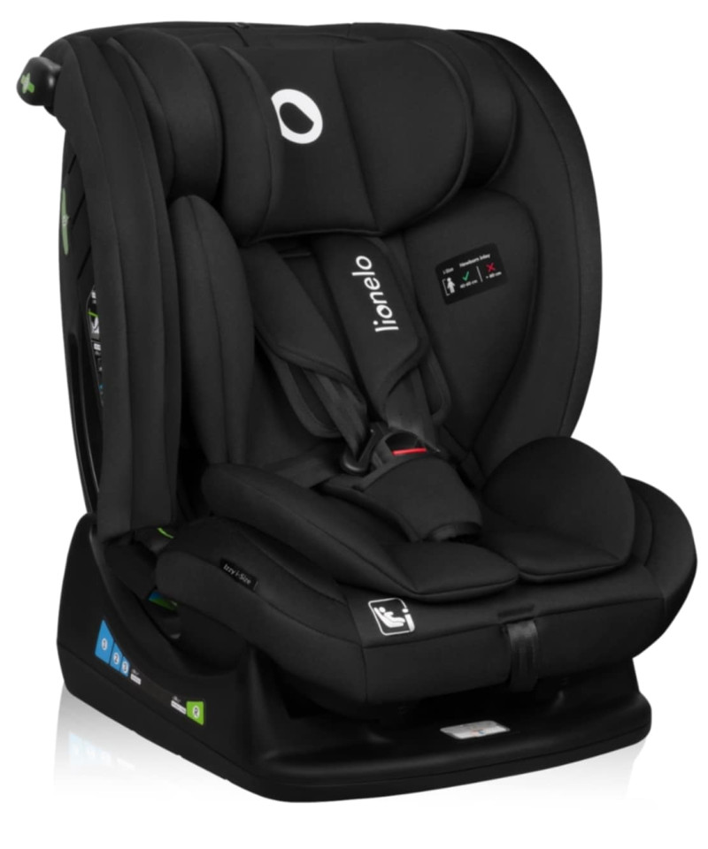 Fotelik samochodowy umożliwiający montaż zarówno przodem, jak i tyłem do kierunku jazdy, dla dzieci od 40 aż do 150 cm wzrostu Lionelo Izzy i-Size.