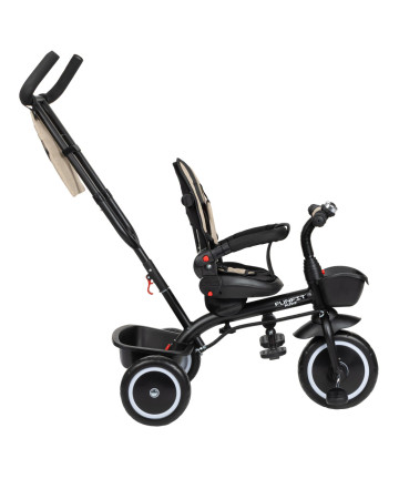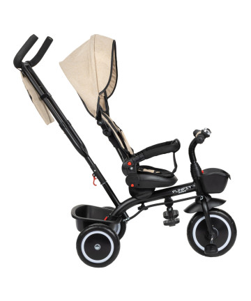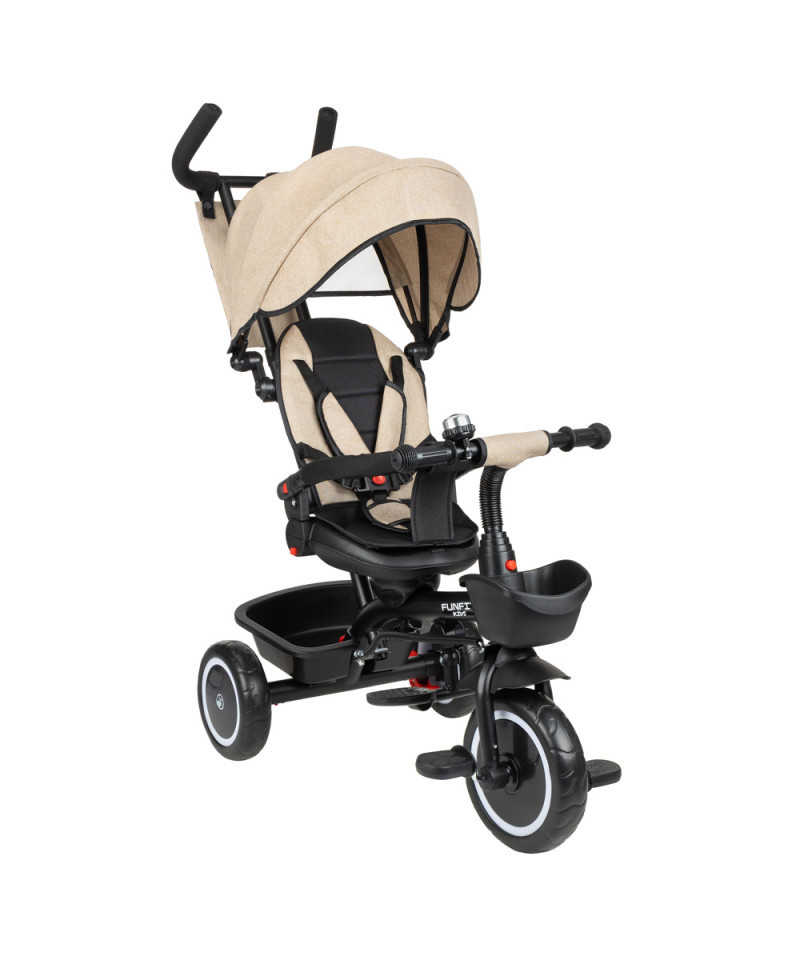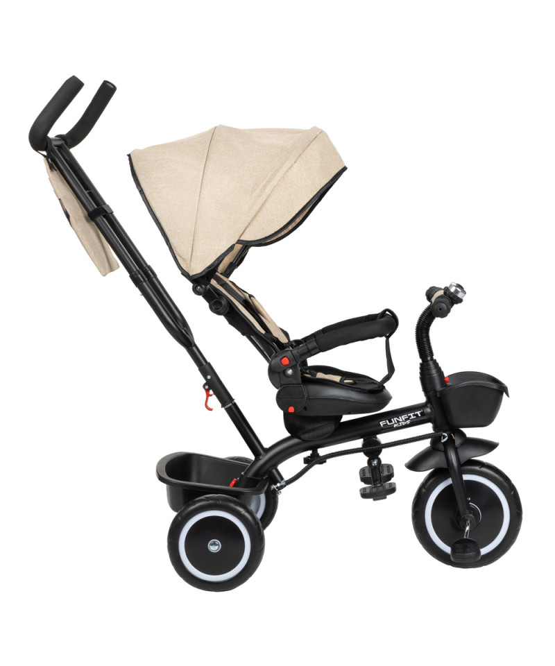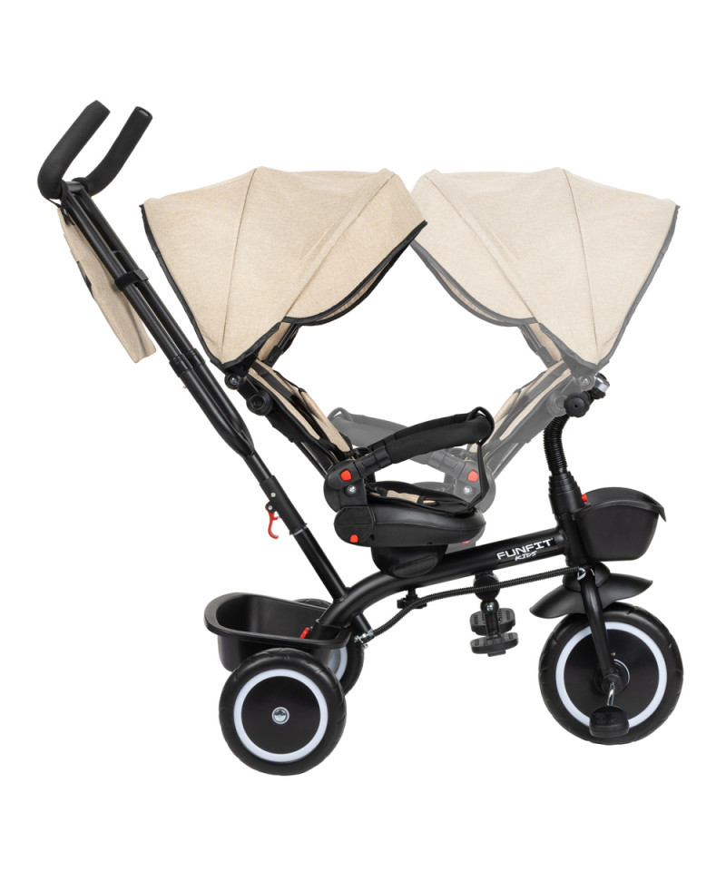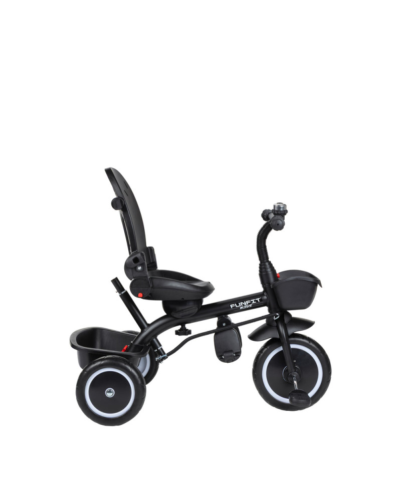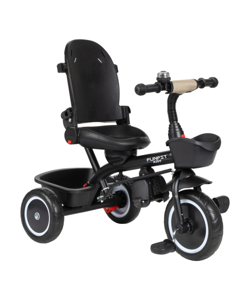 Trójkołowy rowerek FUNFIT KIDS to idealne połączenie wózka spacerowego i rowerka biegowego w jednym. Wyposażony w regulowaną rączkę do prowadzenia, pozwala rodzicom na pełną kontrolę nad jazdą dziecka. Komfort zapewnia miękkie, obracane siedzisko z pasami bezpieczeństwa oraz duża budka przeciwsłoneczna chroniąca przed słońcem. Solidna konstrukcja gwarantuje stabilność i wygodę podczas jazdy po różnych nawierzchniach. Dodatkowo praktyczne koszyki na akcesoria umożliwiają zabranie ulubionych zabawek czy drobiazgów na spacer.