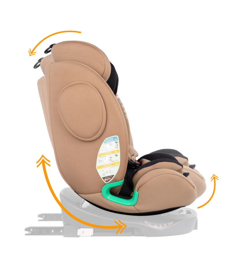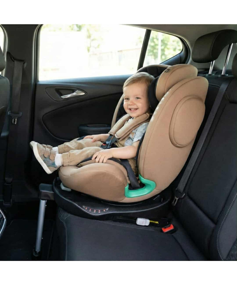 Obracane siedzisko 360°: Ułatwia wkładanie i wyjmowanie dziecka z fotelika.